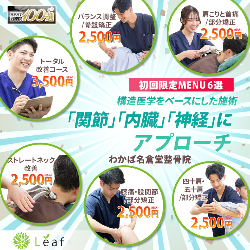 骨に異常は無いなら筋肉系の異常ではないかと思い、インターネット検索した整骨院の中から、わかば名倉堂整骨院に行く事にしました。